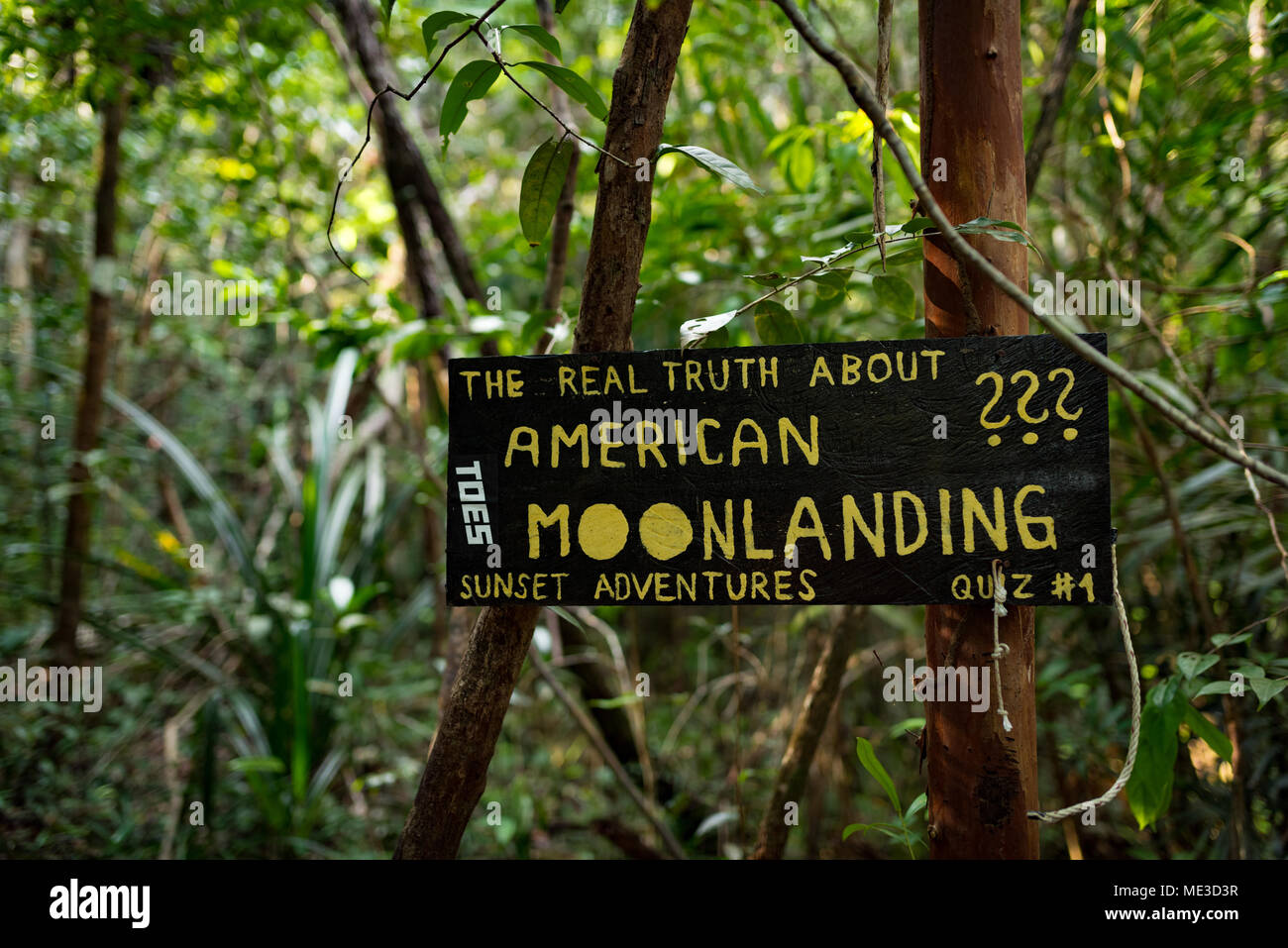 Sign In The Middle Of Jungle Showing The Way To The Resorts At Sunset Beach Koh Rong Samloem Cambodia 15 November 2017 Stock Photo Alamy